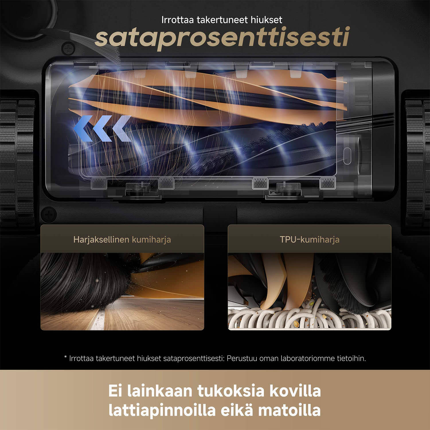 Markkinoiden tehokkaimmalla 25 000 Pa:n Vormax -imuteholla varustettu robotti-imuri imee mukaansa myös hiekan ja suuremmat karvat, sekä märät liat pinnalta kuin pinnalta, ja myös puhdistaa matot perusteelliseti. Kolmipyöräisen AgiLift-rakenteen ansiosta Aqua 10 Ultra Track -robotti-imuri kulkee vaivatta matolle, ja osaa automaattisesti nostaa imurin runkoa 1,4 cm ylöspäin, joten mattojen kastumisesta ei ole vaaraa. Yli 15 mm nukkainen matto kannattaa kuitenkin asettaa kierrettäväksi moppauksen aikana.